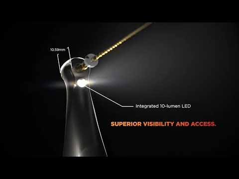 - Mini contra-angle with integrated 10-Lumen LED